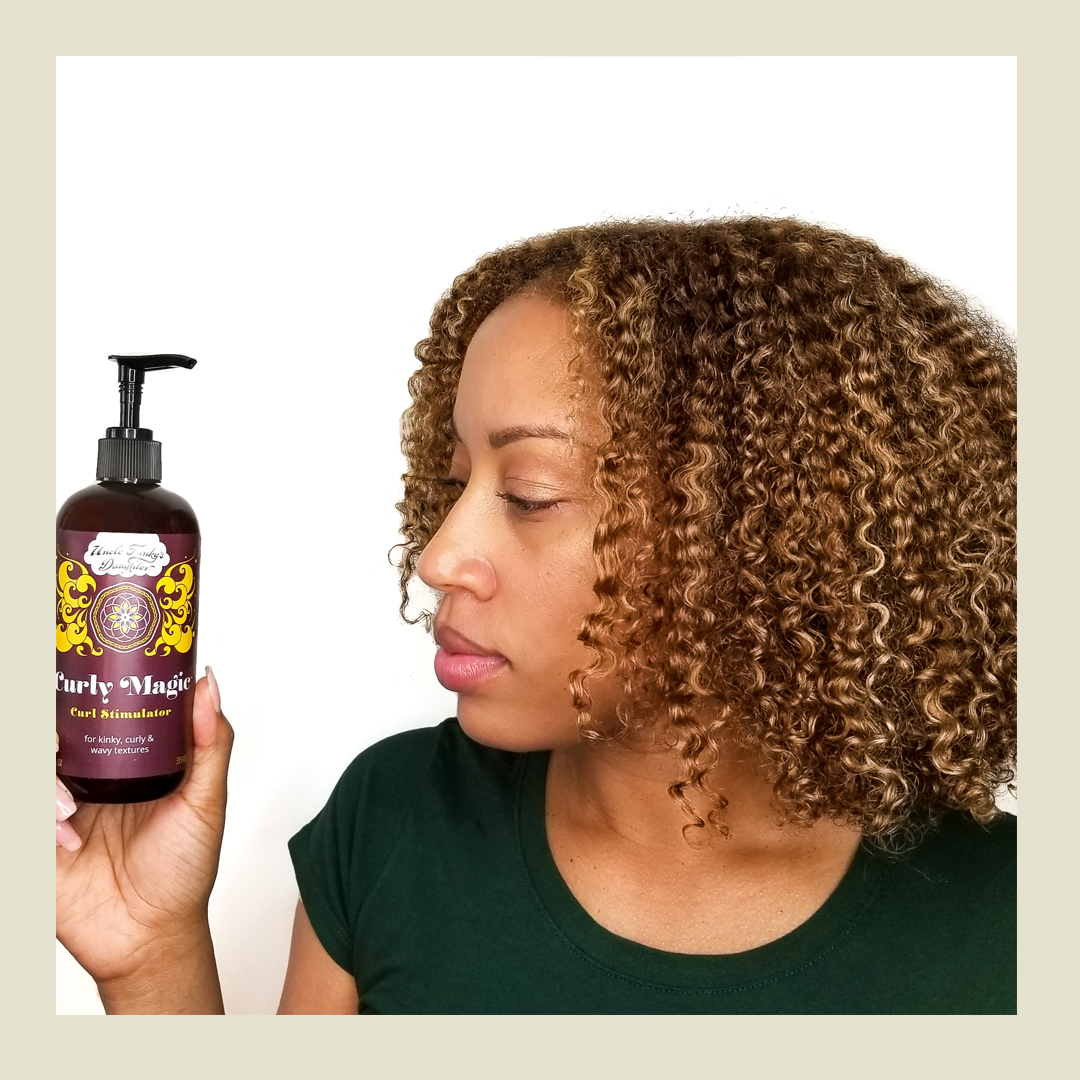 When it comes to styling my hair, Uncle Funky’s Daughter has more stylers than I could ever need. This is great when you have specific needs for different hair types. My favorite go to styler is their Curly Magic Curl Stimulator. It is perfect for my wash and gos, giving me great definition and I also use it as a gel to slick down my buns.