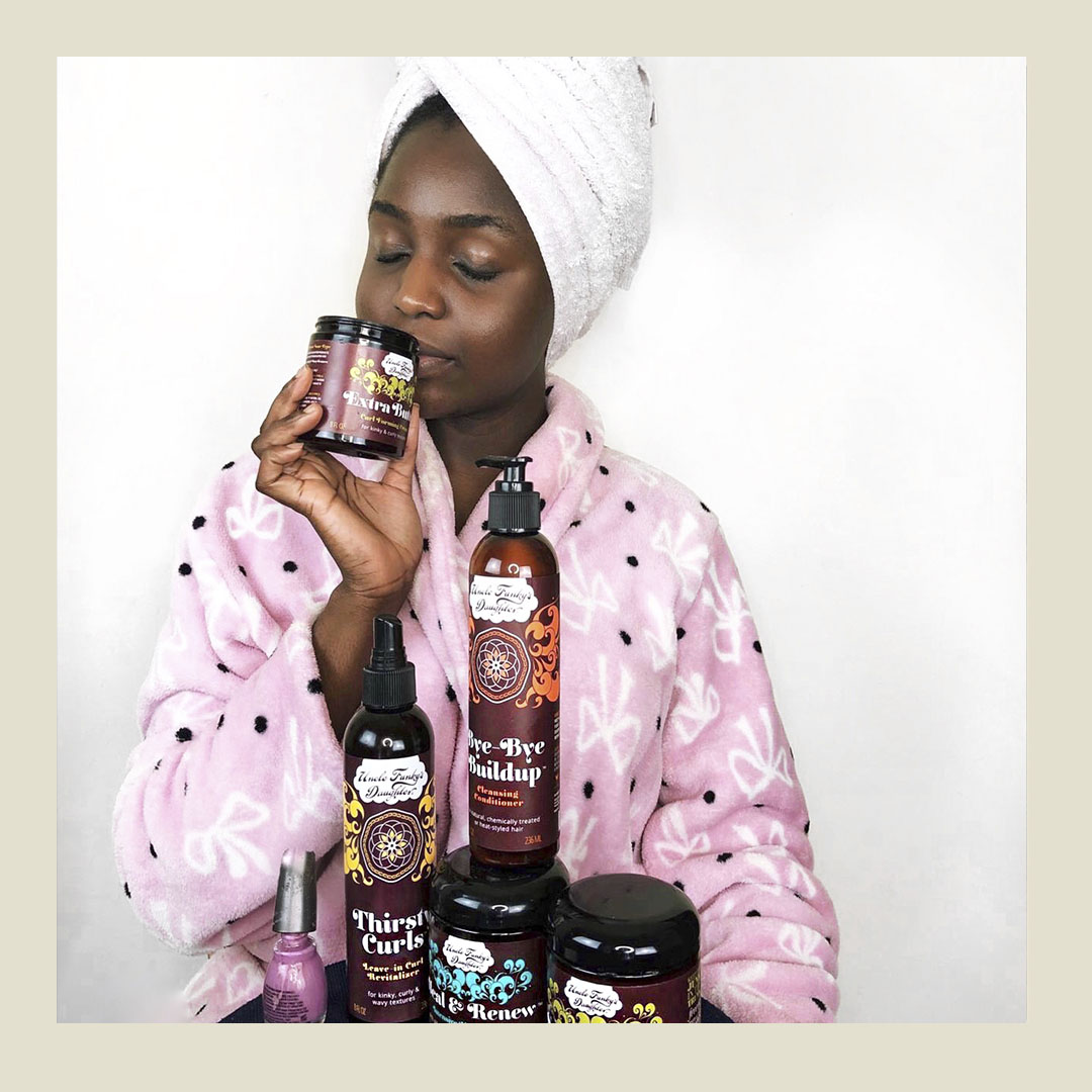 These products still maintain the moisture in your hair allowing the oil to move through each hair strand. After that, I apply “Good Hair” which is a conditioning styling cream. This gives your hair a nice shine for days. Twist your hair with this yummy goodness and it will be hydrated and juicy! For an extra “oomph” I add “Super Curl” or “Extra Butter” -my favorite go-to moisturizers on top to seal in all that moisture.
