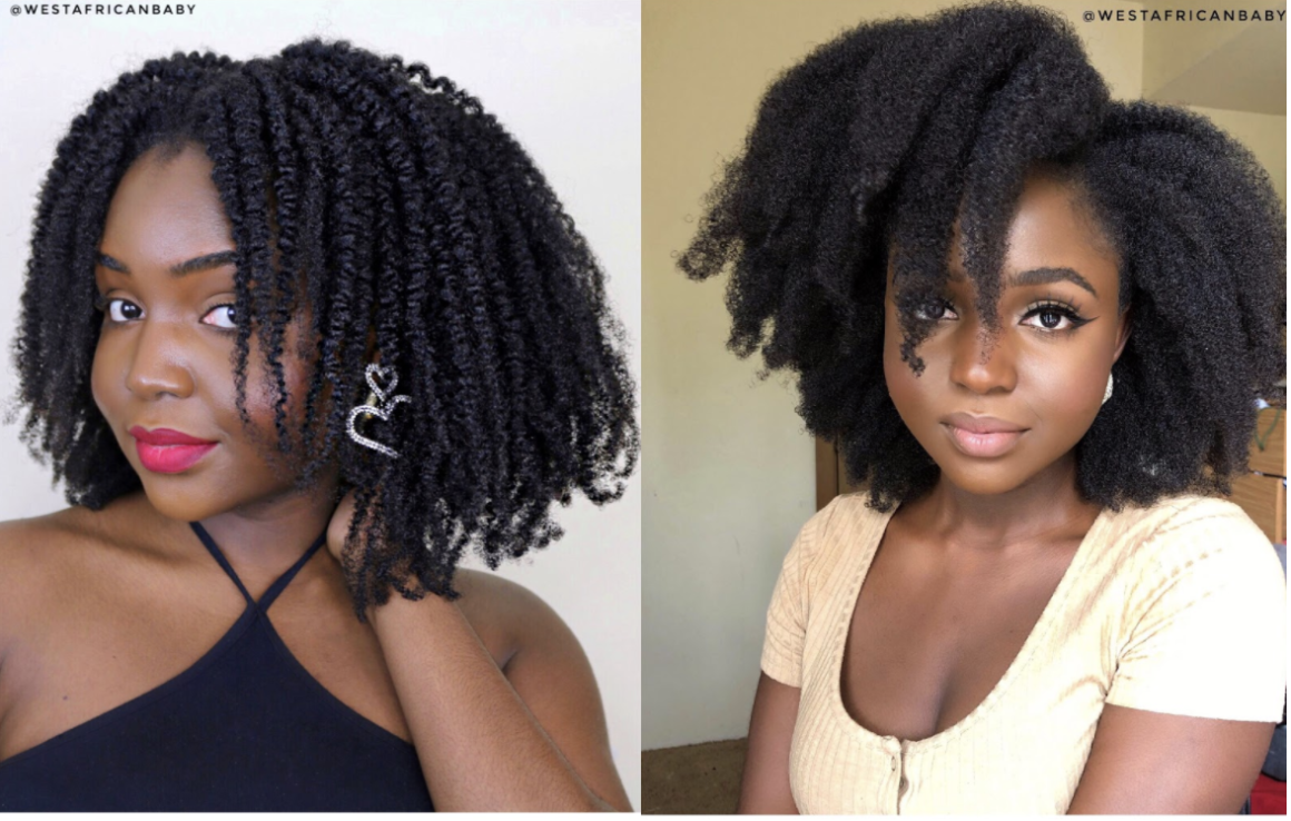 Since our hair is tightly coiled, pre-stretching before styling goes a long way and helps our styles come out smoother. People with looser hair, like the type 3s, also stretch their hair but they do it by simply brushing their hair or with a quick light blowout. Mere brushing of each section can be enough to stretch and smooth out looser hair before styling because the curls aren’t that tight. But for us type 4 girls, especially 4c, we need more effective stretching methods. You can try doing African threading, putting your hair in cornrows before styling or finger-detangling each section before twisting or braiding. Make sure to apply good products to your hair before stretching to ensure your hair is soft and moisturized. It gives a better stretch. I recommend Super Curl or Extra Butter for African threading or corn rows and Supercurl with Thirsty Curls or Midnite Train for finger detangling.