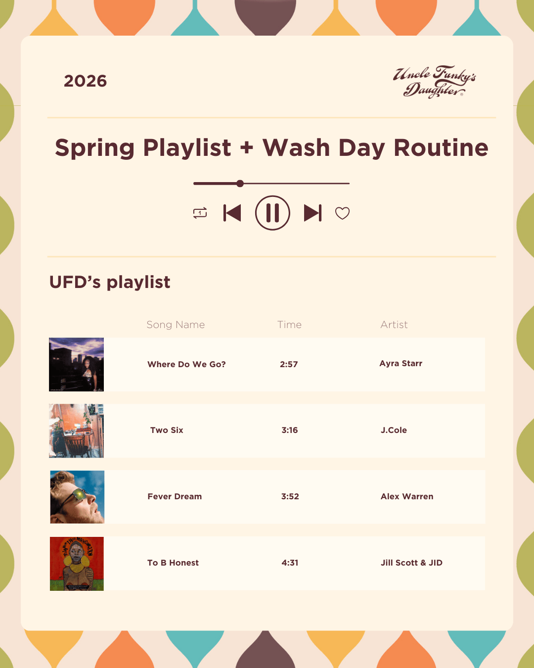 New season, fresh wash day, endless style possibilities. With Uncle Funky’s Daughter and the spring playlist, every step of your routine becomes part of the glow-up. Press play, start fresh, and step into spring with curls that are cleansed, nourished, styled, and ready for whatever’s next.